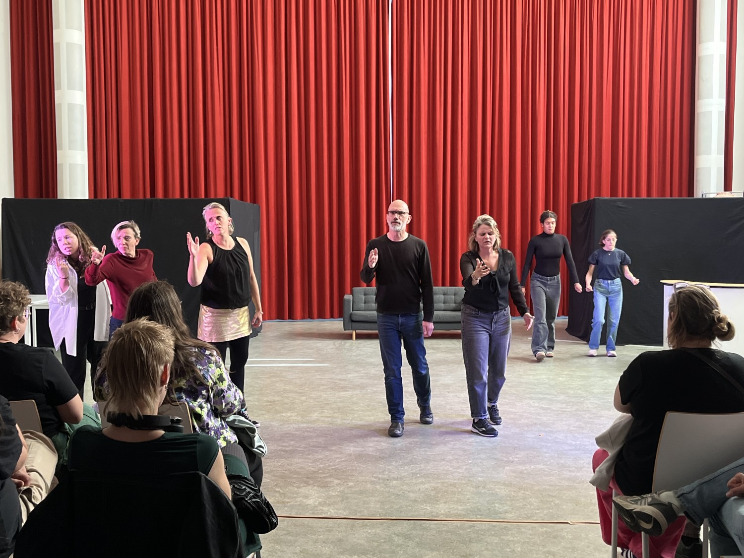 Voor wie De Afzondering nog niet kent: op vrijdagavond stapt een groep spelers een toneelzaal in het Gentse binnen, en op zondagmiddag speelt men - dit keer met regie van Stefanie De Pauw en Jo Verhenne - het kersverse stuk voor publiek.
